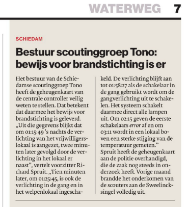 Wimn Vossen stuurde een ingezonden brief naar het Algemeen Dagblad, katern Waterweg. In zijn ingezonden brief gaat hij in op de subsidieperikelen van de Schiedamse scoutinggroepen.